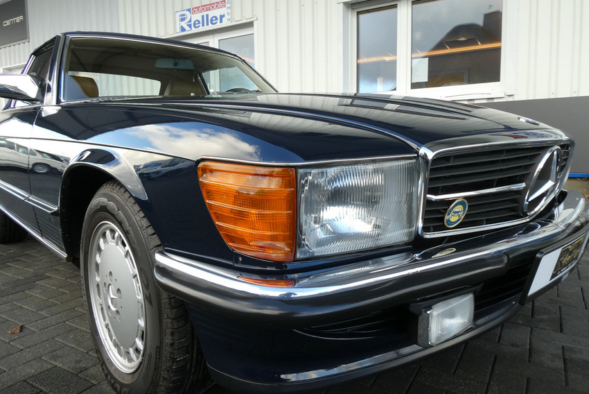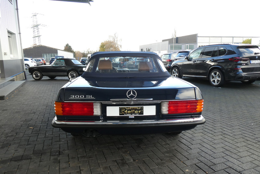 Dieser 300 SL wurde 1986 original in dunkelblau 904 kombiniert mit einer beigen Innenausstattung ausgeliefert. Das Fahrzeug stammt aus nachweislich 2. Hand. Die Karosserie ist komplett ungeschweißt und rostfrei.