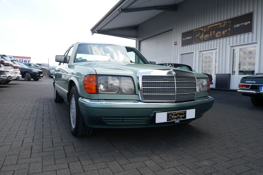 Dieser Mercedes-Benz 500 SE wurde 1989 ausgeliefert. Die S-Klasse besticht bereits auf den ersten Blick mit einer sehr schönen Farbkombination (grün/grün). Das Fahrzeug befindet sich im rostfreien, ungeschweißten und gepflegten Originalzustand. Die Innenausstattung ist sehr gepflegt und weist keine Beschädigungen auf. Mit dem 8 Zylinder verfügt der W126 über hervorragende Fahreigenschaften.